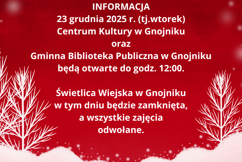 Zmiana godzin otwarcia – 23 grudnia 2025 r.
